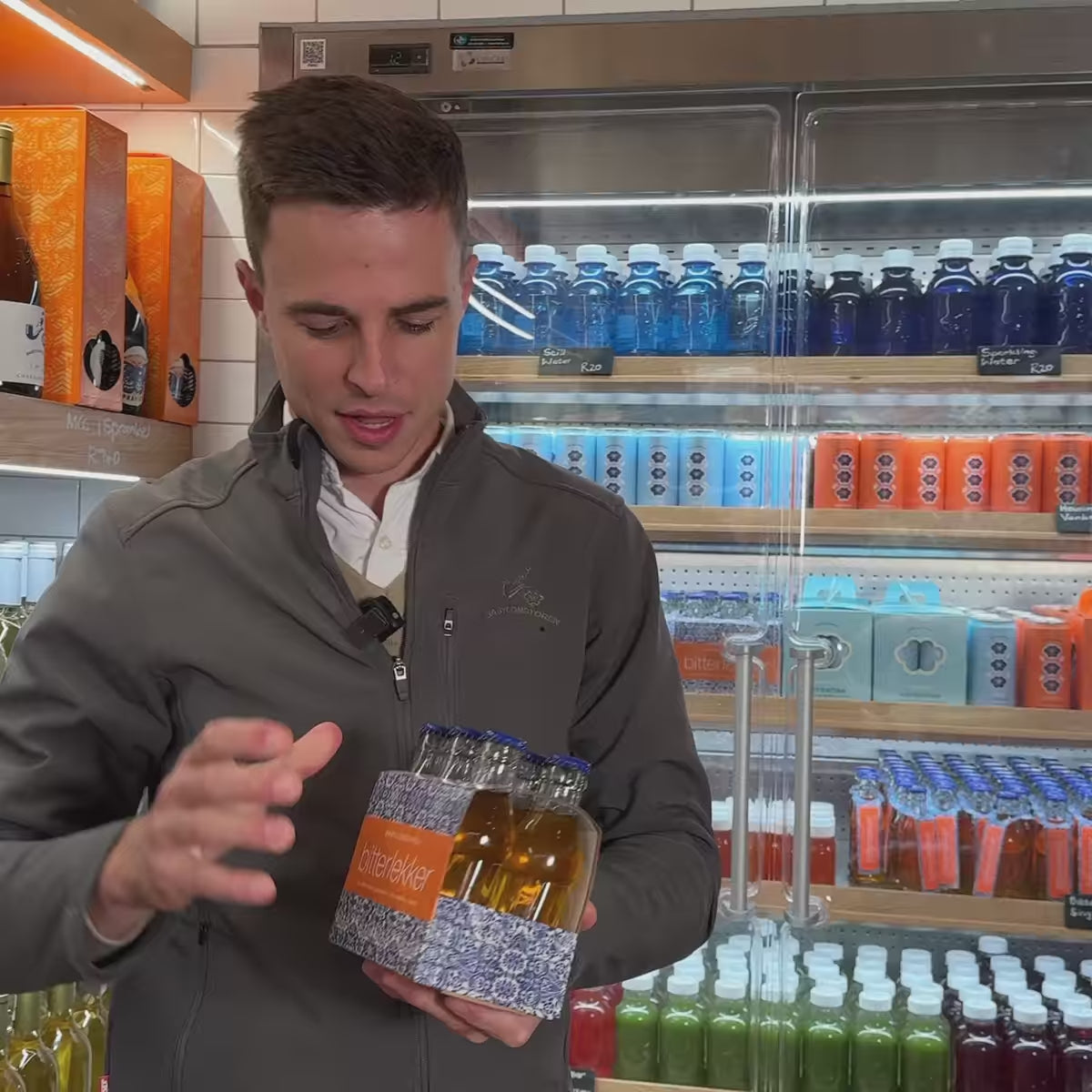 Pair your bitterlekker moment with light, farm-fresh snacks or antipasti for a sophisticated, alcohol-free treat.